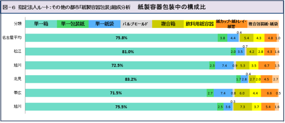 ・単一素材の紙箱、包装紙、紙袋、パルプモールド、複合素材の紙箱、包装紙・紙袋、飲料用紙容器(AL付き)、紙カップ・紙トレー・紙管、に分類した構成比を図-5に示す。