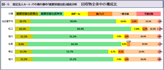 2012年〜2019年に名古屋市「紙製容器包装」の組成分析結果を図-3に示す。